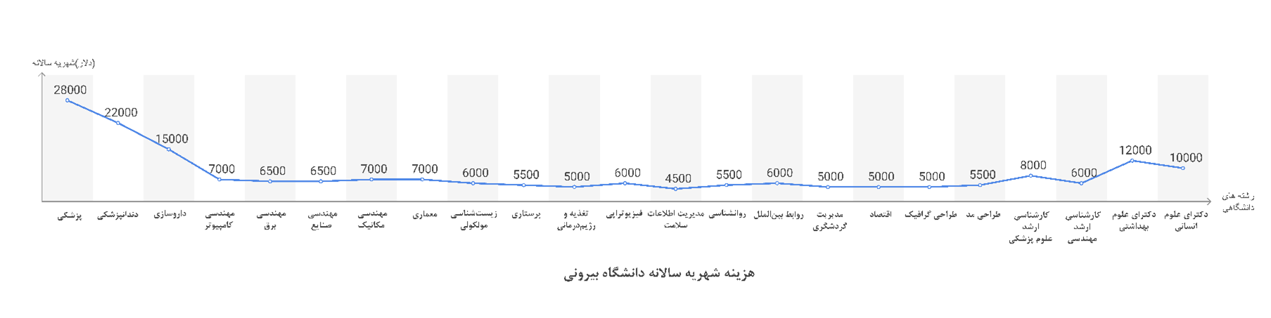 - پزشکی (انگلیسی): ۱۵,۰۰۰ تا ۲۵,۰۰۰ دلار در سال