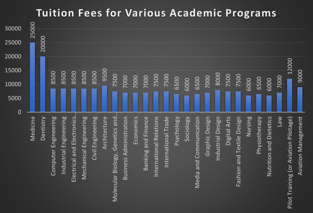 Imagine making an investment in your most valuable asset: your academic and professional future. Okan University paves the way with a flexible combination of transparent tuition fees and a wide range of financial support programs. Tuition costs are carefully structured based on the level and type of program. For undergraduate degrees, annual tuition ranges between $4,000 and $12,000  with high-demand programs like Medicine at the top ($12,000) and more affordable fields like Social Sciences around $4,500. For graduate and doctoral programs, tuition drops to $3,500–$8,000 per year, depending on whether the program is research- or course-based.
