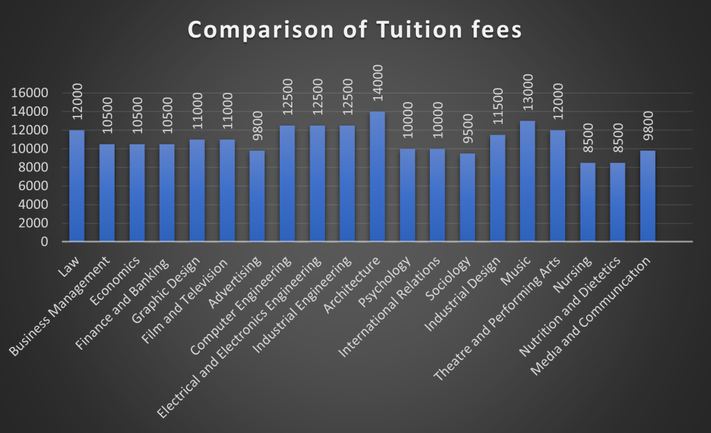 Tuition fees at Bilgi vary depending on the level and field of study. For undergraduate programs, fees typically range from $8,000 to $18,000 per year. High-demand majors such as International Law or Computer Engineering are at the upper end of this range, while programs in Social Sciences and the Arts generally cost less. For graduate studies, annual tuition starts at around $5,000 and can go up to $12,000. Encouragingly, Bilgi offers a convenient installment payment system, allowing students to split their fees into 3 to 6 payments—interest-free and without additional charges.