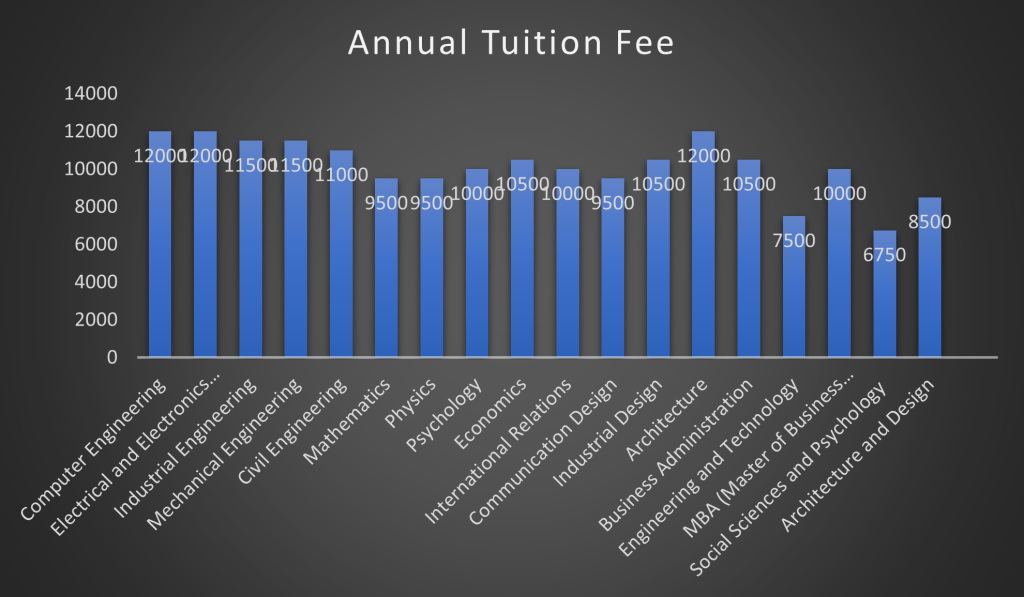 TED University Turkey offers a transparent and flexible financial structure that makes quality education accessible for students. Tuition fees vary depending on the program and degree level: undergraduate engineering programs range from $12,000 to $15,000 per year, humanities and arts from $9,000 to $11,000, master’s programs from $8,000 to $12,000, and PhD programs from $10,000 to $14,000 annually. These fees include full access to all educational facilities, cutting-edge laboratories, and the university’s comprehensive library.